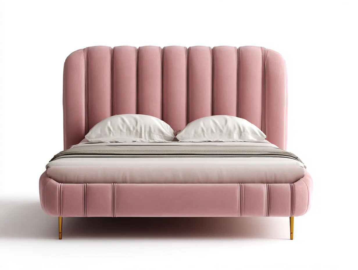Doppelbett - Holz-Stoff-Metall - 210x192x134 cm - Rosa-Gold - Moderner Glamourstil