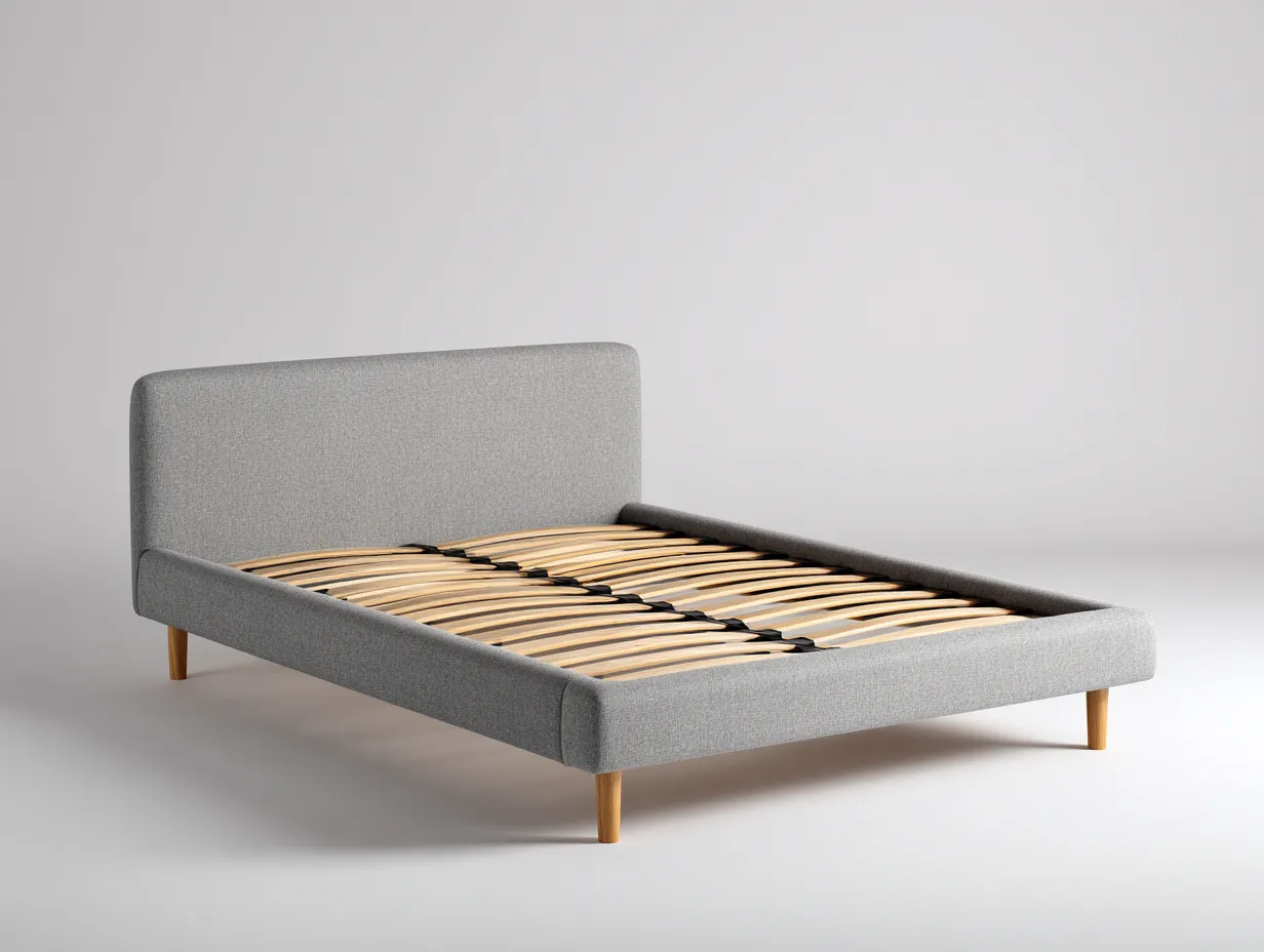 Doppelbett - Holz-Stoff - 204x184x98 cm - Grau-Natur - Skandinavischer Minimalstil